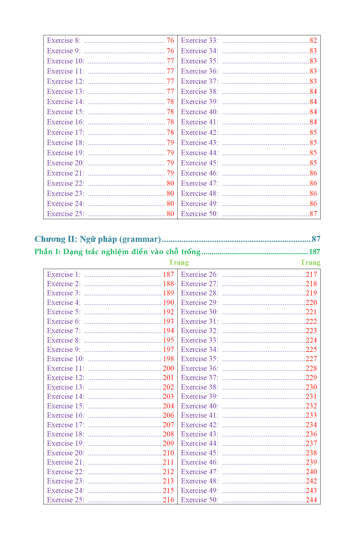 • Chương 2 : Ngữ Pháp : trắc nhiệm điền vào cổ trống, tìm lỗi sai.