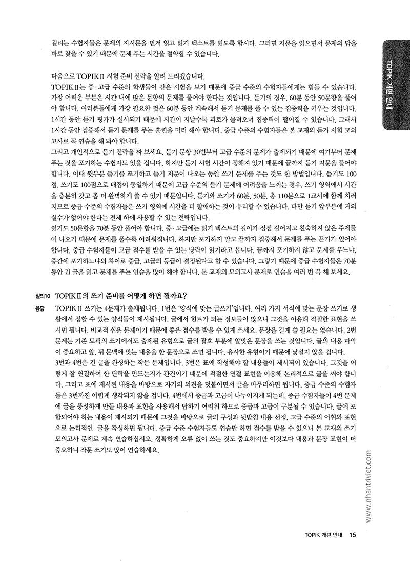 Được biên soạn theo cấu trúc của đề thi TOPIK mới, giáo trình này được đưa vào chương trình giảng dạy từ tháng 7 năm 2014 nhằm hỗ trợ thí sinh ôn thi.