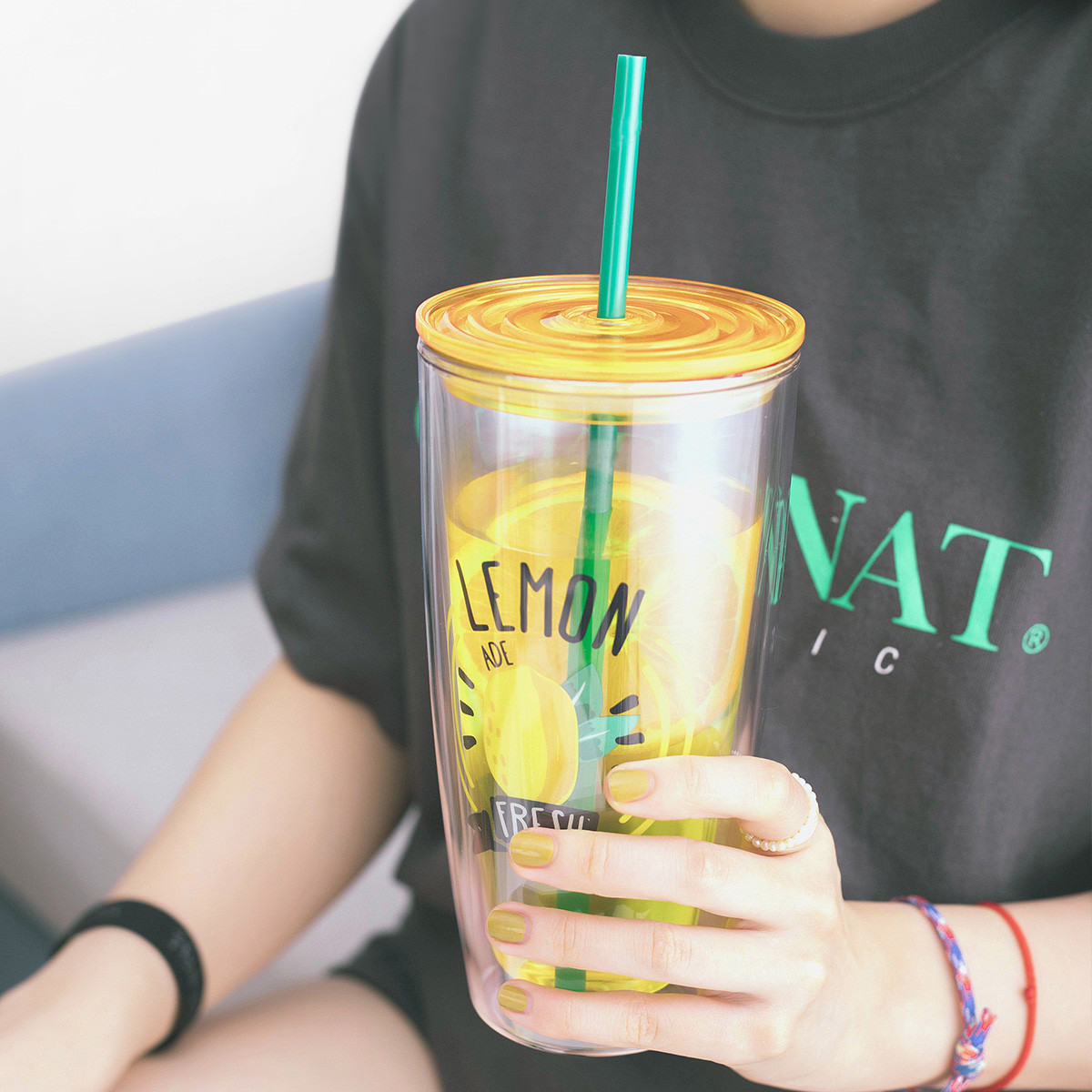 Ly nhựa 2 lớp Lock&Lock màu vàng HAP507YEL 750ml - Hàng chính hãng, có ống hút, có nắp đậy - JoyMall