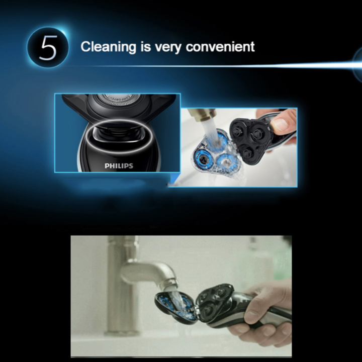 - Đầu cạo Flex linh hoạt theo 5 hướng có thể tự do di chuyển theo 5 hướng khác nhau, đảm bảo tiếp xúc sát với da giúp bạn cạo râu nhanh và sát kể cả ở vùng cổ và quai hàm. Cạo không dây 40 phút