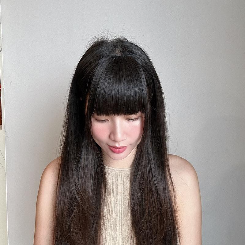 THÔNG TIN SẢN PHẨM:   Loại: Mái Hime mái dày   Chất liệu: Tóc th.ậ t 100% Uốn, Ép, Nhuộm đều được.   Màu sắc: Màu nâu trầm, Màu nâu socola, Màu nâu sáng, Màu