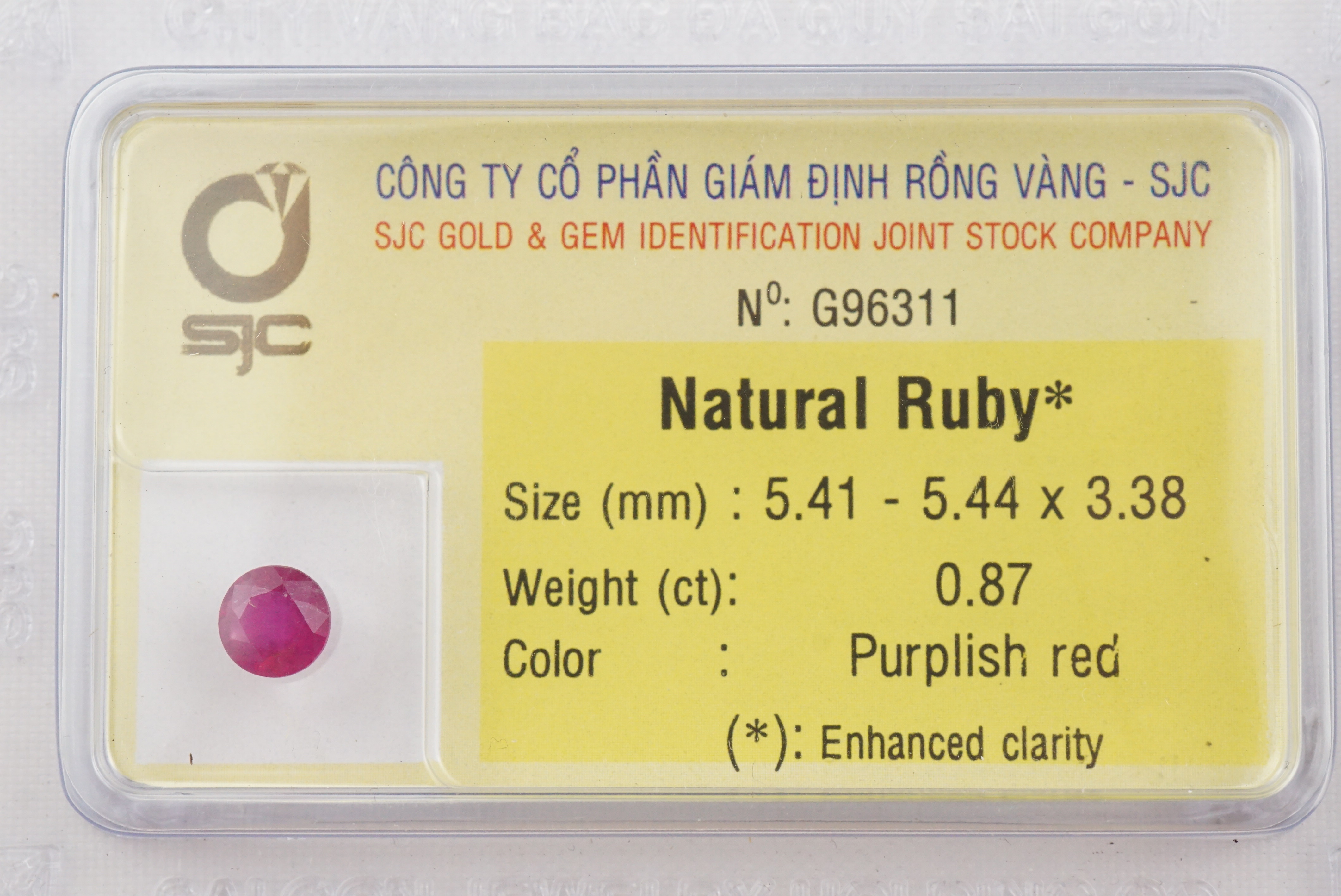 Chất liệu đá Ruby tự nhiên, đã kiểm định bởi SJC