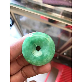 Mặt dây chuyền Nữ Đồng Điếu Đồng Tiền Đá Ngọc cẩm thạch tự nhiên Size 28mm xdầy 5mm xanh rau câu đẹp