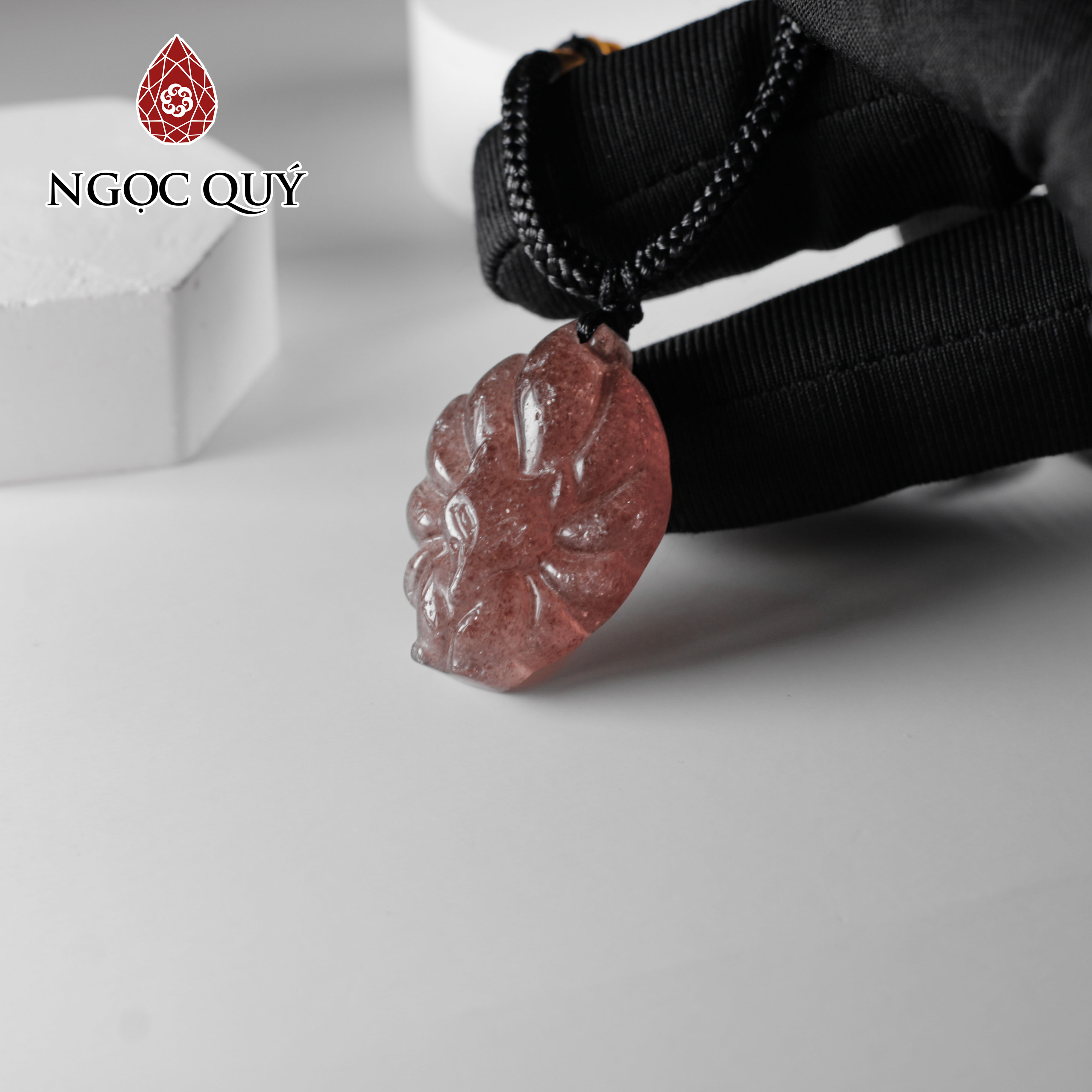 Mặt dây chuyền hồ ly thạch anh dâu bọc bạc - Hợp mệnh mộc, mệnh hỏa | Ngọc Quý Gemstones |