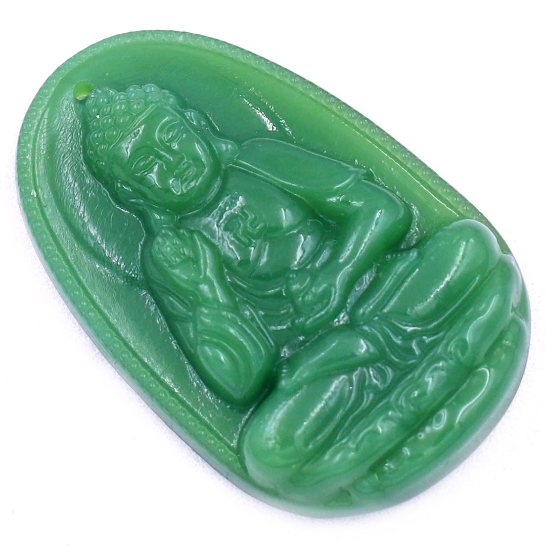 Thông tin sản phẩm: Mặt dây chuyền Phật A di đà đá xanh 2.2 x 3.6cm ( size trung ) kèm vòng cổ dây cao su xanh lá + móc inox, Phật bản mệnh