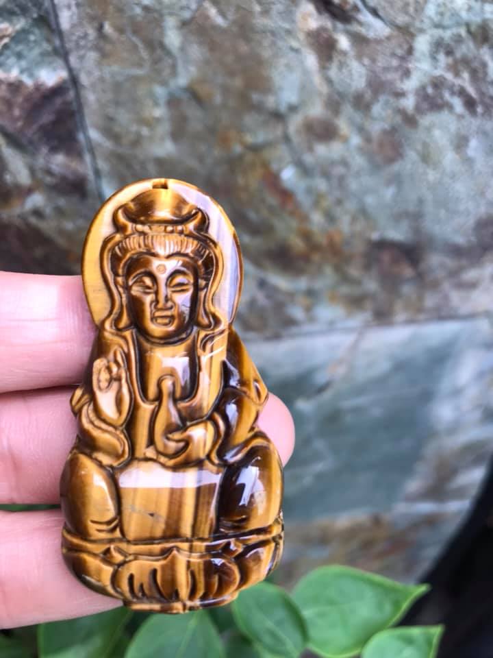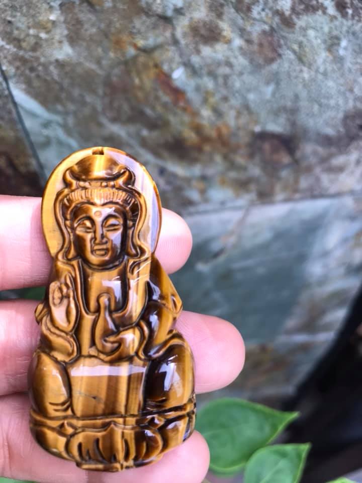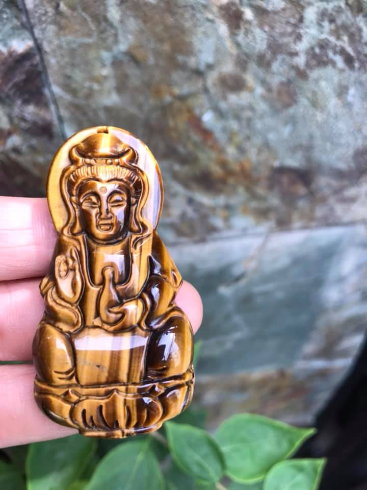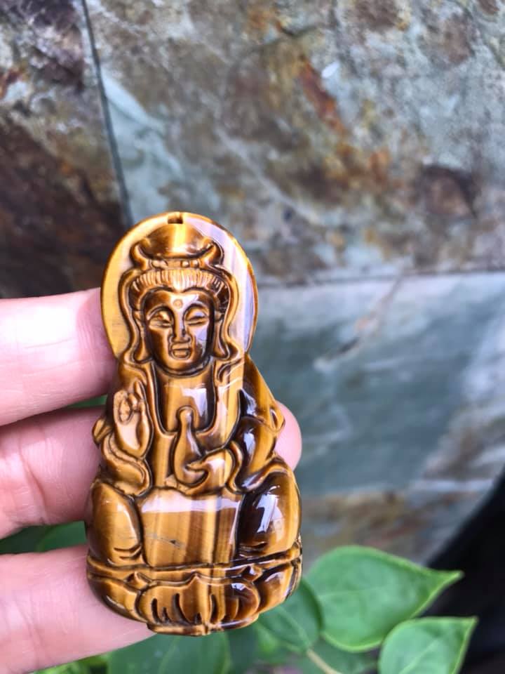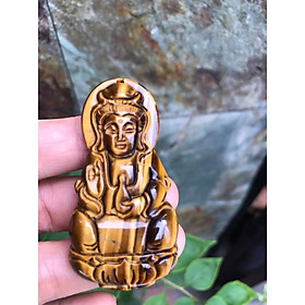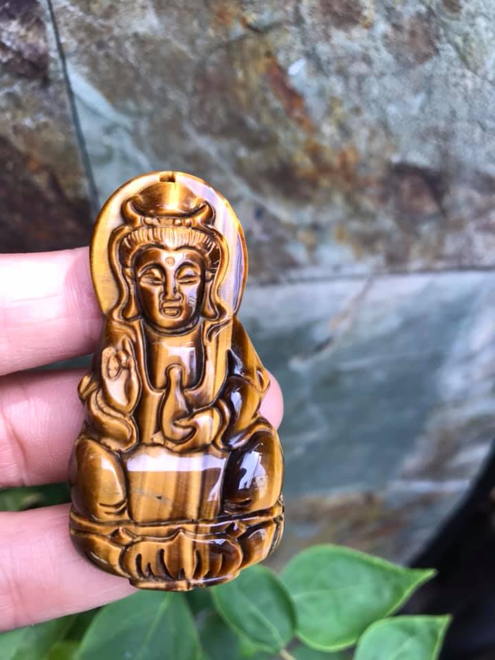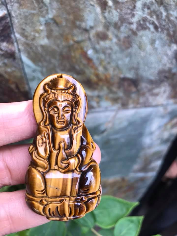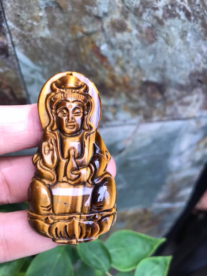 Mua tại TiktokMặt Dây Chuyền Phật QUAN ÂM size Lớn Cao 58mm x Ngang 30mm x Sâu 11mm Chất Liệu 100% Đá Mắt Hổ Vàng Nâu Tự Nhiên Nam mệnh Kim Thổ Thủy