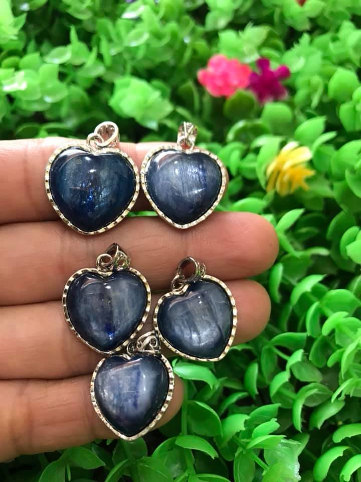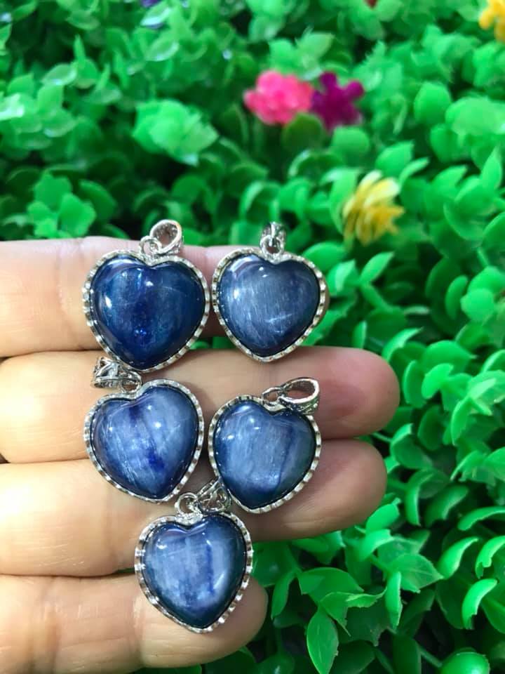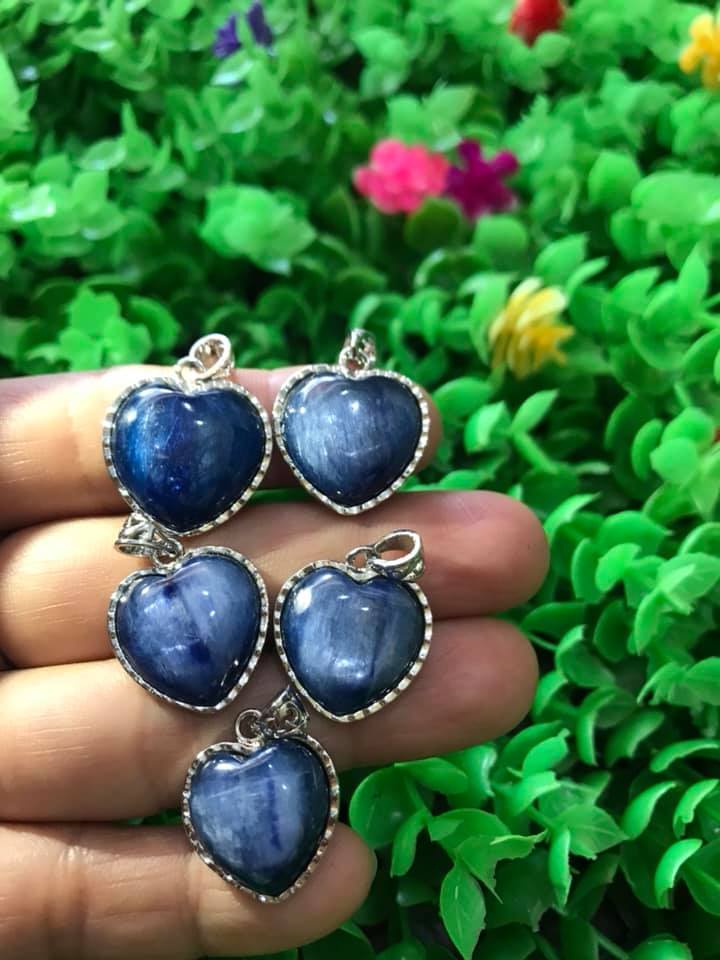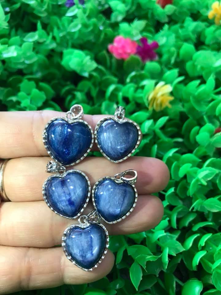 ✨MẶT DÂY CHUYỀN TRÁI TIM ĐÁ KYANITE HAY GỌI LÀ ĐÁ SAPPHIRE NƯỚC TỰ NHIÊN MÀU XANH DƯƠNG ĐẬM RẤT RẤT ĐẸP LẮM LẮM Ạ SIZE CAO 18MM X NGANG 19MM NỮ MỆNH THỦY MỆNH MỘC ĐEO Ạ