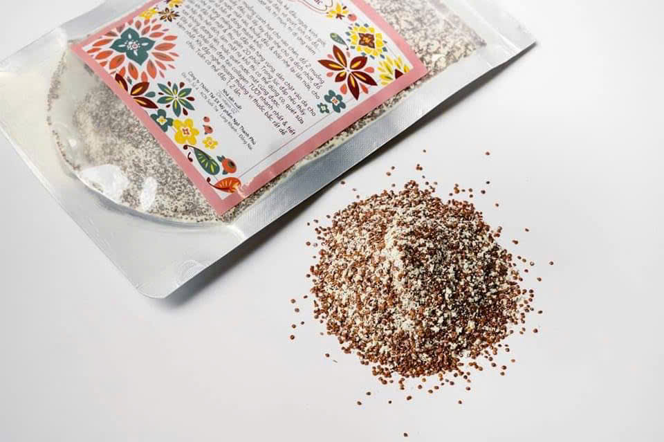 Lấy hai thìa cafe bột nạ ngũ hoa cho vào chén, cho thêm 5 muỗng nước lọc vào khuấy đều lấy tay bóp nhẹ cho ra hạt nở ra. Bóp nhẹ thấy mềm dẻo và kết dính là được.