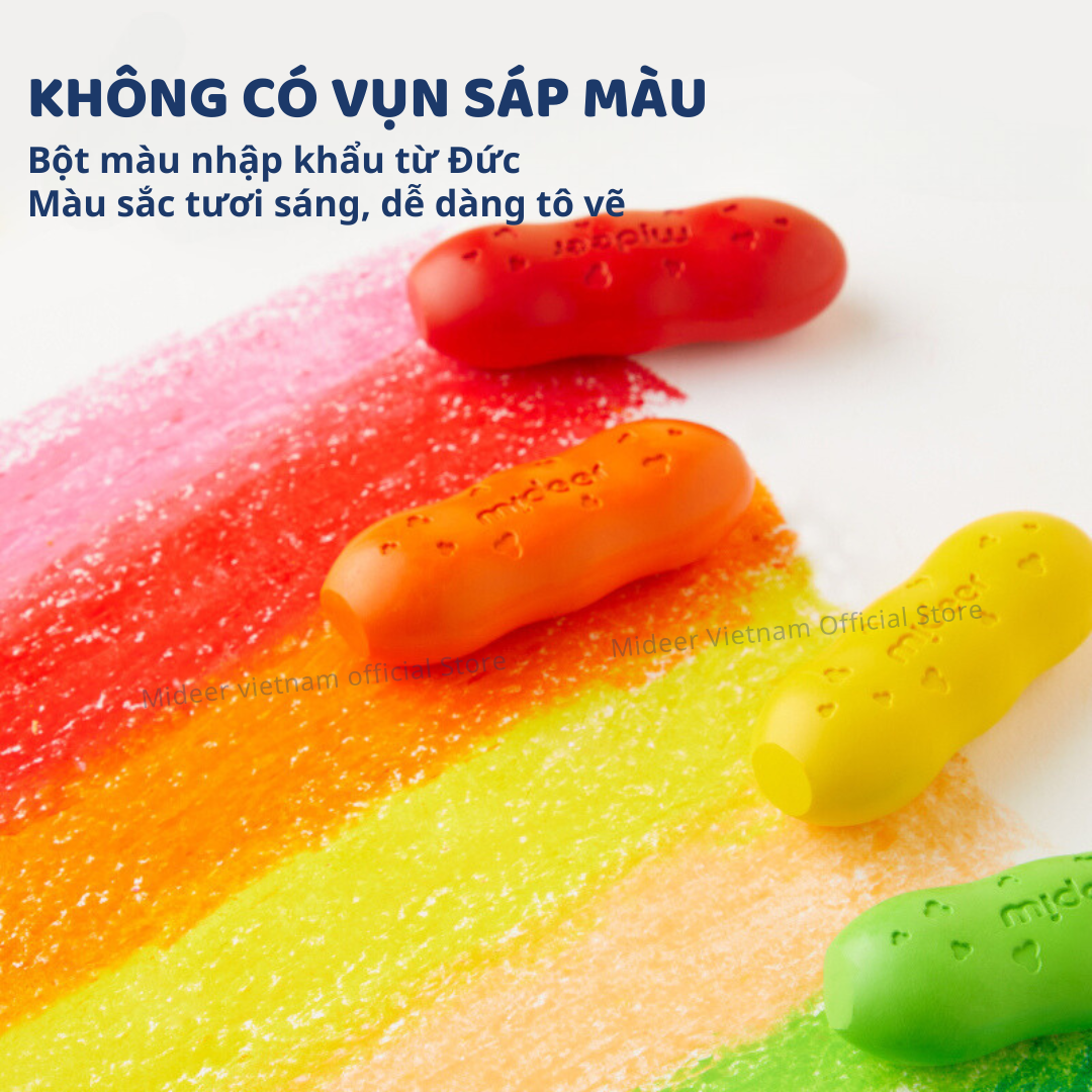 Mua tại Tiktok"CHÀO MỪNG BẠN ĐẾN VỚI MIDEER VIETNAM HÀNG SẴN SHIP HỎA TỐC, BẢO HÀNH CHÍNH HÃNG ————————————— Màu sáp Lụa hạt Đậu Pease Crayons Mideer, Bút Sáp Màu Hữu Cơ An Toàn cho bé Hãy để trí tưởng tượng của bé bay xa cùng bút màu Mideer! Được thiết kế đặc biệt cho những đôi tay nhỏ bé, bút màu Mideer mang đến cho trẻ em một trải nghiệm nghệ thuật tuyệt vời, nơi mà mọi đường nét và màu sắc đều trở nên sống động và đầy sức hút. 8 lý do ba mẹ nên chọn Màu sáp Lụa hạt Đậu Pease Crayons Mideer, Bút Sáp Màu Hữu Cơ An Toàn cho bé