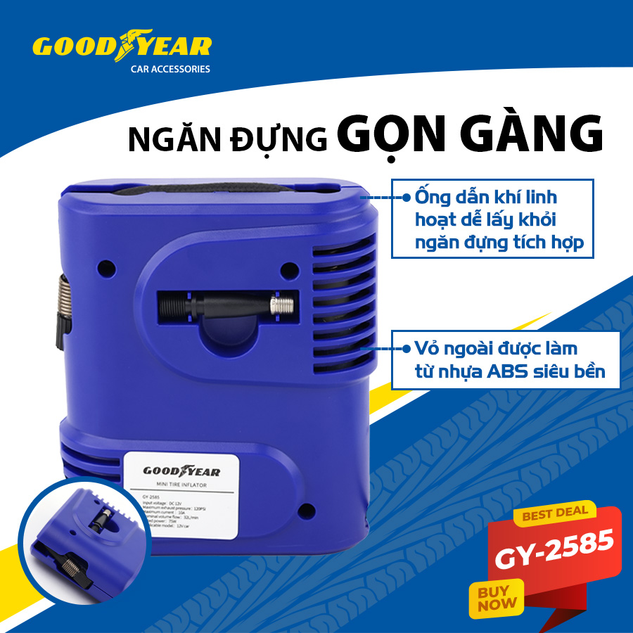 ✨Máy Bơm Lốp Xe GOODYEAR GY-2585 Mini Tiện Dụng - Nhập Khẩu Chính Hãng