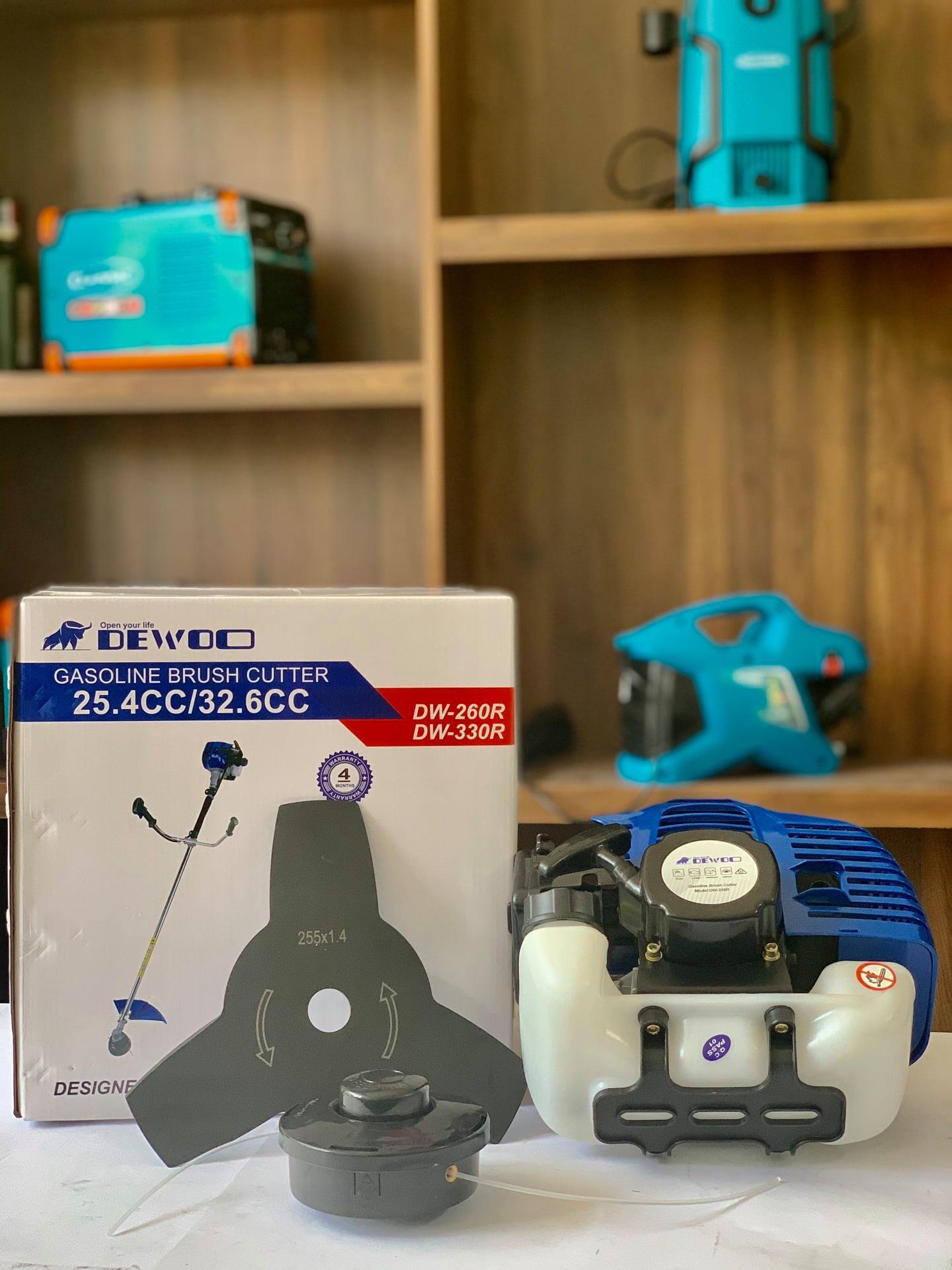 Máy cắt cỏ chạy xăng Dewoo được sản xuất trên dây chuyền công nghệ hiện đại của Nhật Bản với chất lượng tốt nhất. Động cơ 2 thì, 1 xi lanh, dung tích 25.6cc làm mát bằng gió mạnh mẽ, bền bỉ.