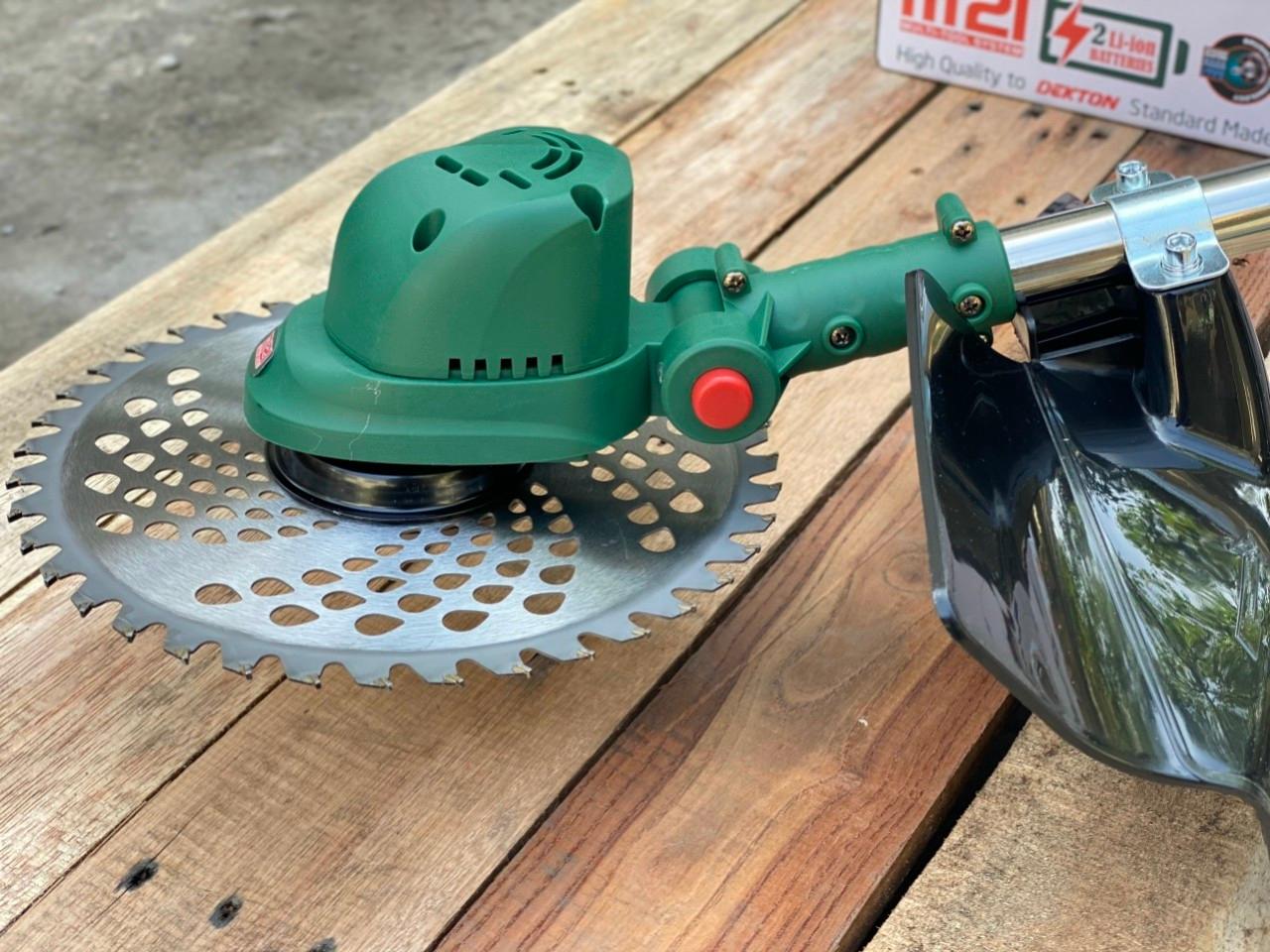 -Lưỡi cắt 230mm, 2 lưỡi, 1 lưỡi cước, lưỡi dùng chung với máy cắt cỏ xăng