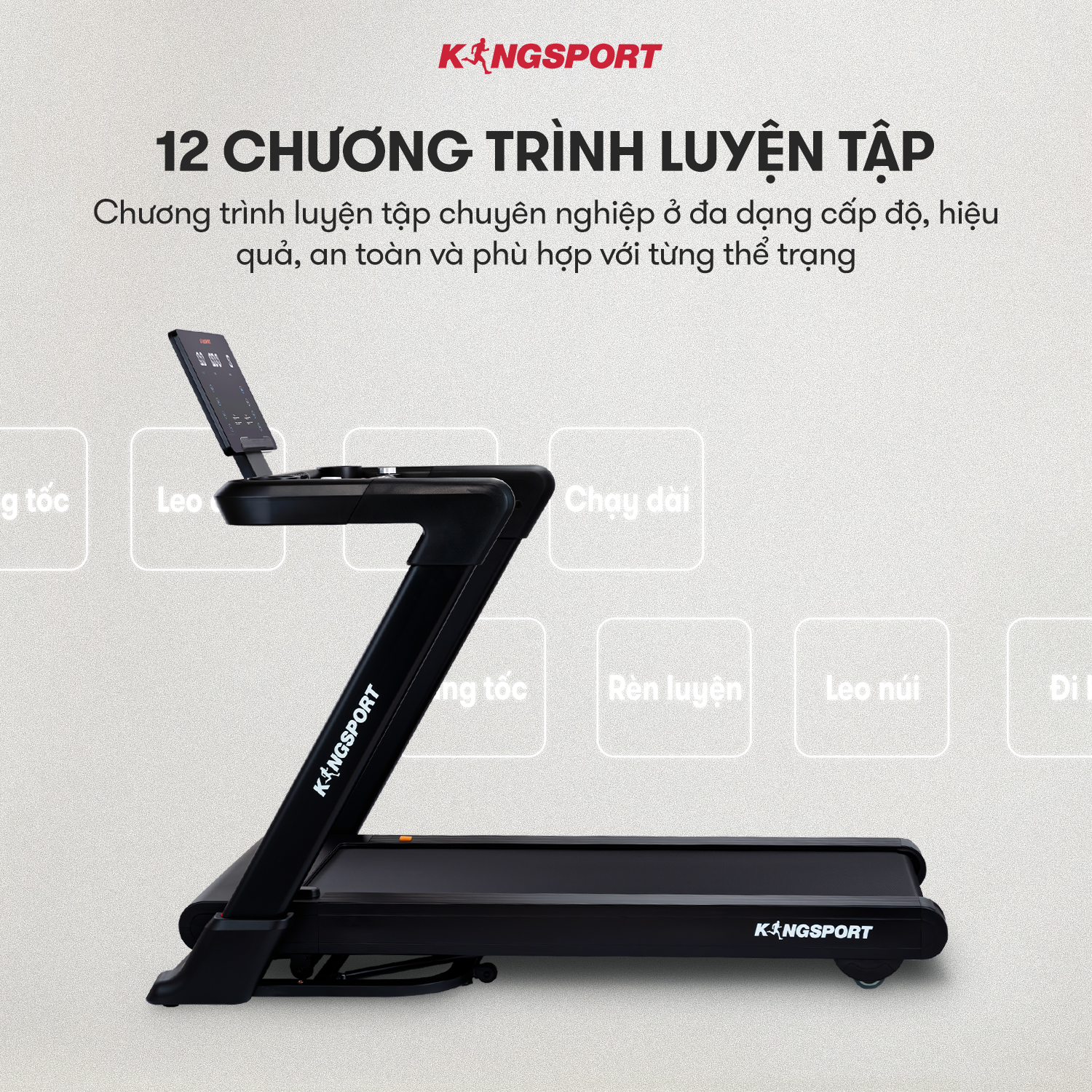Máy Chạy Bộ KingSport KS-2055 Đa Năng - Chạy Bộ Thả Ga, Cả Nhà Cùng Khỏe ️ Thiết kế sang trọng và hiện đại phù hợp với mọi không gian ️ Khung sườn Kingtech Titan 2.0
