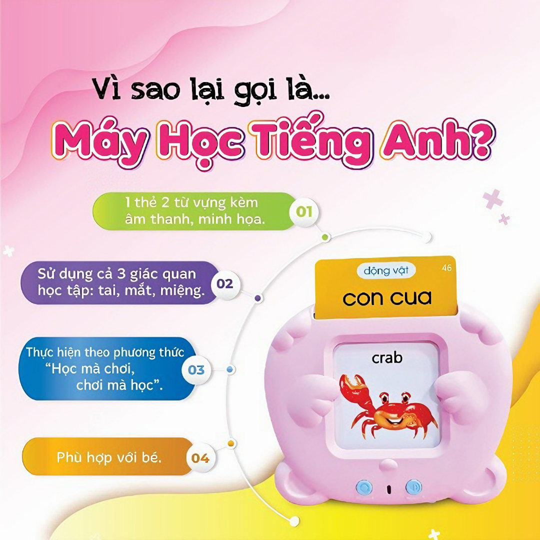 Máy Đọc Thẻ FlashCard Song Ngữ Anh Việt 112 Thẻ 224 Từ Vựng Nâng Cao Khả Năng Nghe Đọc Hiểu Cho Bé