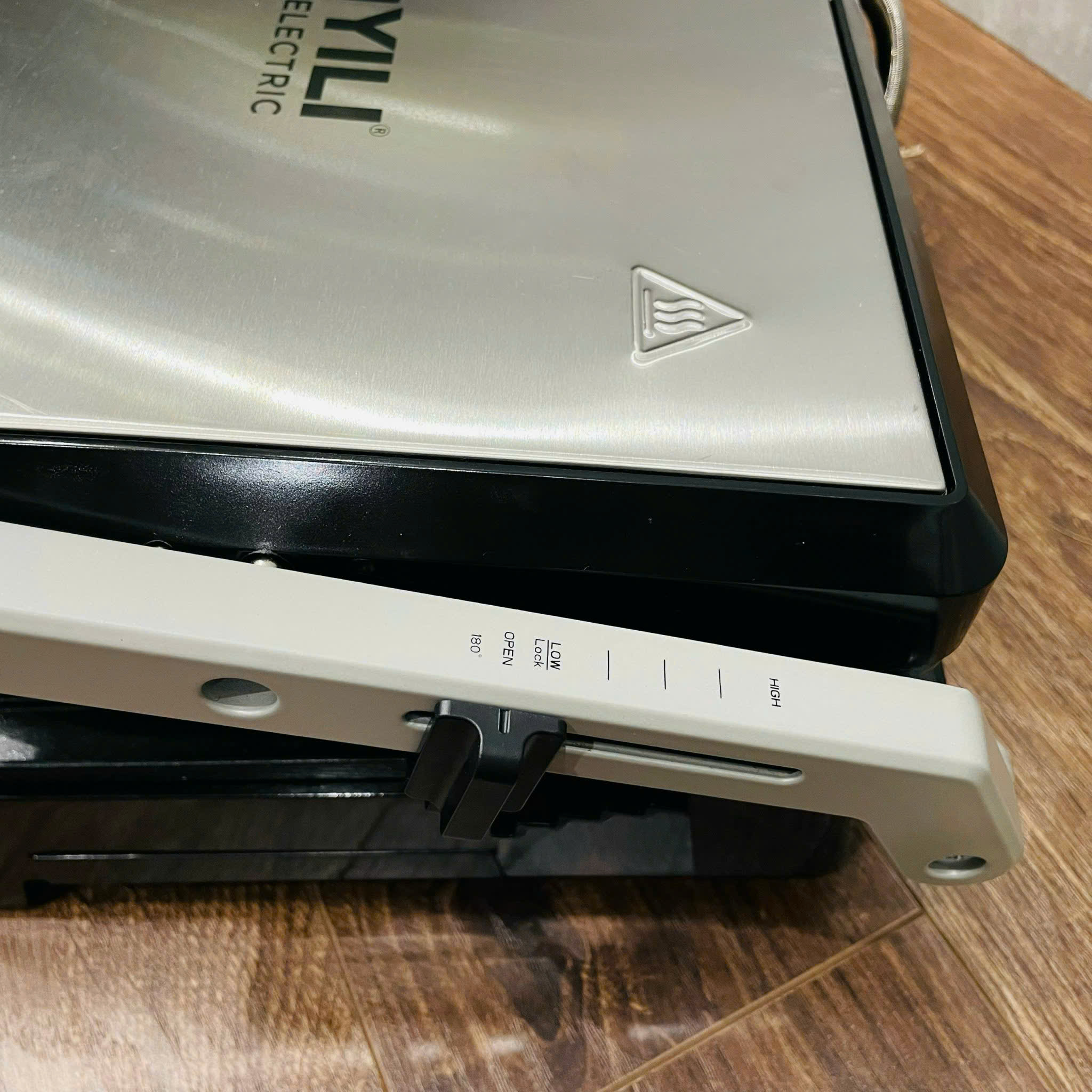 - Ưu điểm: Có chỉnh hẹn giờ, có nấc chỉnh nhiều mức độ ngả của mặt máy, không tháo rời được mặt bếp LƯU Ý: Đối với các sản phẩm là máy nướng, khi cắm điện lần đầu sẽ xuất hiện khói và khét. Khói bốc lên và mùi khét là vì khi sản xuất máy, nhà sản xuất có tra các phần dầu để bôi trơn các khớp máy, bảo vệ máy và dây điện, khi cắm điện lên, sẽ tỏa nhiệt, nhiệt sẽ đốt các phần dầu dư bảo vệ máy đó, khiến có khói và hơi khét. CAM KẾT BÁN HÀNG: