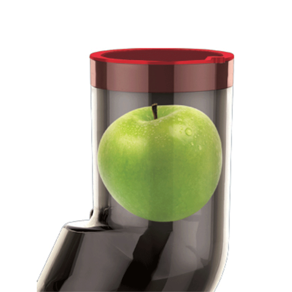 Miệng máy ép nguyên trái “Whole Slow Juicer” được cấp bằng sáng chế với đường kính 7.5cm ép cả quả mà không cần phải cắt lát giúp bạn tiết kiệm 40% thời gian chuẩn bị nguyên liệu cũng như hạn chế mất chất dinh dưỡng của hoa quả khi bị cắt bổ.