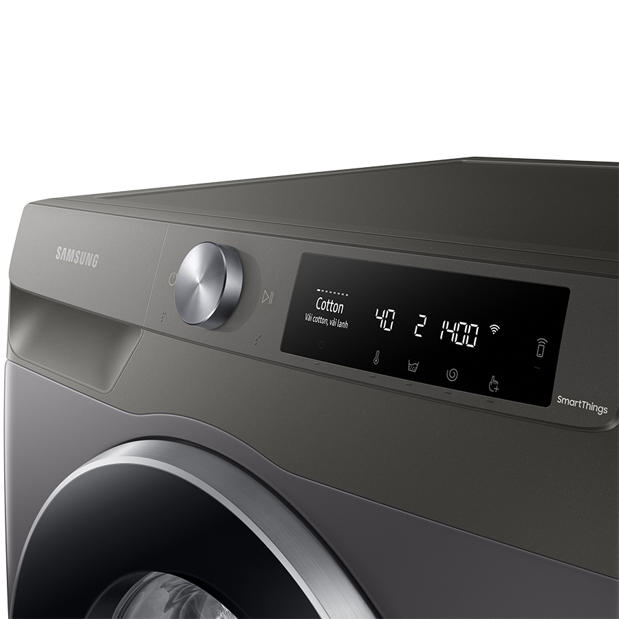 - Hỗ Trợ Suốt Thời Gian Sử Dụng Bảng Điều Khiển Thông Minh AI Control Máy Giặt Samsung Inverter 9 kg WW90T634DLN được trang bị bảng điều khiển AI tự động ghi nhớ, phân tích, đề xuất chế độ giặt và cài đặt yêu thích dựa trên thói quen sử dụng, mà không cần tùy chỉnh mỗi lần giặt. Màn hình hiển thị quy trình giặt dễ hiểu, hướng dẫn thông minh và kết nối với điện thoại qua ứng dụng SmartThings điều khiển máy giặt mọi lúc mọi nơi. Ngăn Nước Giặt Xả Thông Minh AI Dispenser Phân bổ lượng nước giặt, nước xả chính xác theo khối lượng áo quần cho hiệu quả giặt sạch tối ưu, tránh lãng phí. Chỉ cần đổ đầy 1 lần, dùng trong 1 tháng, không phải tự đong nước giặt xả mỗi lần giặt. Bong Bóng Siêu Mịn Eco Bubble Cỗ máy EcoBubble kích hoạt nước giặt/bột giặt tạo thành bong bóng siêu mịn thẩm thấu vào sợi vải nhanh gấp 40 lần so với máy giặt thông thường, giúp đánh bật vết bẩn tốt hơn 24%*, loại bỏ cặn bám, vết loang chất giặt tẩy và bảo vệ áo quần bền màu, chất liệu tốt hơn 45%. Chế Độ Giặt Super Speed Chế độ Super Speed sử dụng vòi xịt nước siêu tốc với lực nước mạnh mẽ giúp tăng sức mạnh thẩm thấu của bong bóng siêu mịn vào áo quần. Đồng thời rút ngắn thời gian xả và vắt, đảm bảo quần áo sạch nhanh chỉ trong 59 phút. Giặt Hơi Nước Diệt Khuẩn Hygiene Steam Kích hoạt hơi nước nhiệt độ cao thổi vào toàn bộ bề mặt và sâu bên trong từng kẽ vải giúp loại bỏ cặn bẩn bám sâu và diệt 99,9% vi khuẩn và các tác nhân gây dị ứng, bảo vệ sức khỏe cả gia đình. Giảm Rung Ồn VRT Plus Giặt giũ êm ái với công nghệ VRT Plus giảm rung ồn đến 30% trong quá trình giặt. Thiết kế khung máy mới mang lại sự ổn định cao hơn, kết hợp với bộ cảm biến phát hiện rung ồn, từ đó tối ưu hiệu quả vận hành của động cơ. Động Cơ Digital Inverter Động cơ Digital Inverter trang bị nam châm vĩnh cửu, giảm thiểu ma sát khi vận hành, giúp tiết kiện điện năng, vận hành êm ái và độ bền vượt trội đến 23 năm. Chế Độ Vệ Sinh Drum Clean+ Tự động vệ sinh, loại bỏ cặn bám từ gioăng cửa và lồng giặt, và diệt 99,9% vi khuẩn gây mùi trong lồng giặt mà không cần sử dụng hóa chất. Tự động thông báo khi cần vệ sinh (sau 40 lần giặt). Chế Độ Ngâm Bubble Soak Những vết bẩn cứng đầu như cà phê, tương ớt đòi hỏi xử lý sơ trước khi giặt máy. Chế độ ngâm Bubble Soak tăng thời gian ngâm, giúp bong bóng thẩm thấu sâu hơn vào quần áo, loại bỏ tất cả những vết bẩn cứng đầu hiệu quả, mà không cần tốn thời gian và công sức xử lý sơ quần áo.