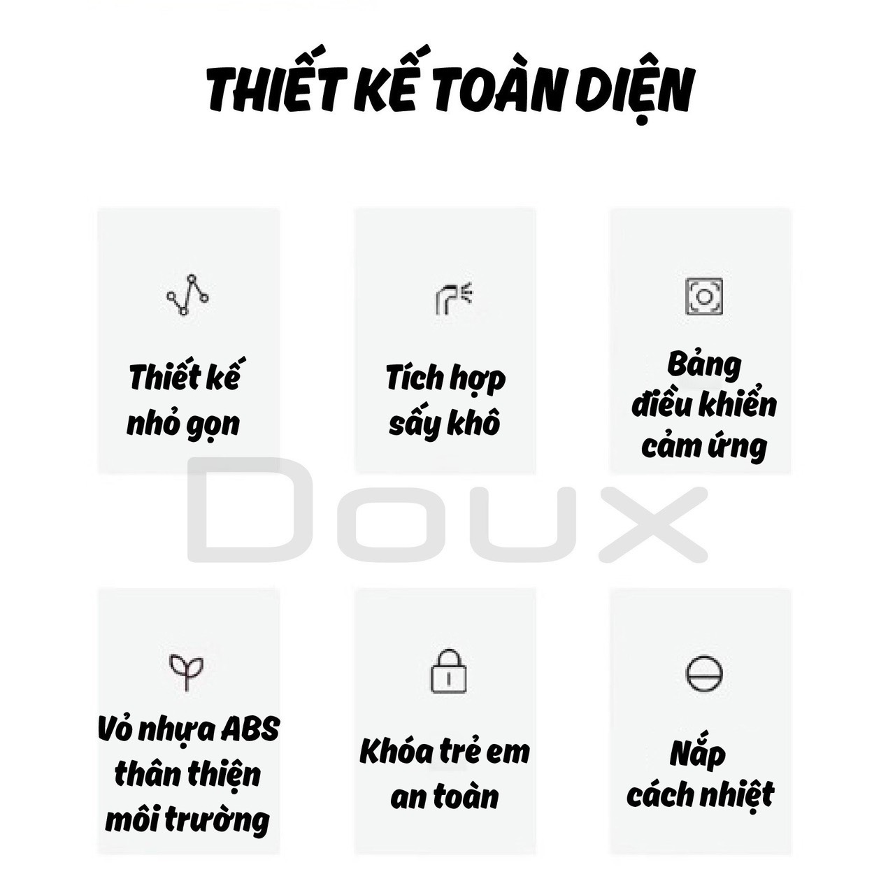 - Doux Lux đã là thương hiệu máy giặt mini tốt nhất thị trường về chất lượng và công năng, năm nay hãng tiếp tục cải tiến và nâng cấp thêm chức năng sấy khô vượt trội để đáp ứng mọi yêu cầu dù là khó tính nhất của quý khách hàng. Một chiếc máy giặt TỰ ĐỘNG HOÀN TOÀN, TỪ GIẶT- VẮT- TIỆT TRÙNG- SẤY KHÔ Với chiếc máy giặt mini này làn da của bé sẽ được bảo vệ tuyệt đối, quần áo thì thơm tho, sạch sẽ với CÔNG NGHỆ GIẶT 6 bước hiện đại