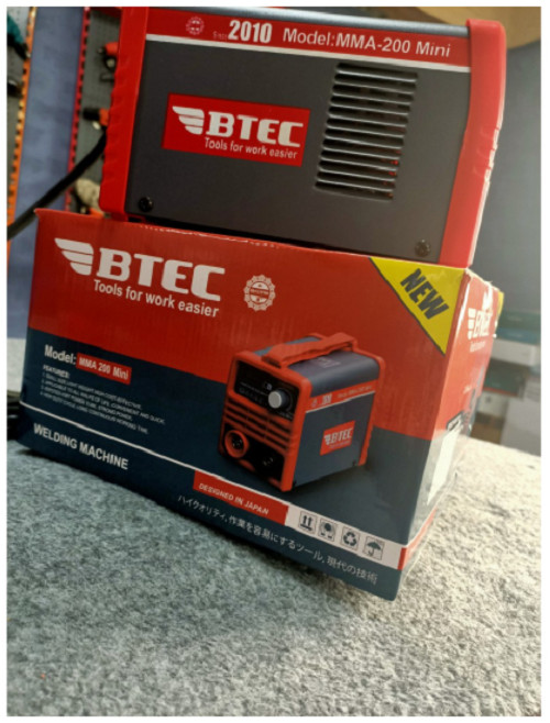 +Btec MMA-200MINI thân máy được thiết kế nhỏ gọn, có dây đeo tiện lợi phù hợp cho các bác thợ hàn mái , hàn cổng leo trèo mà không lo mỏi .