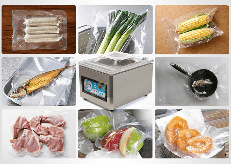 Hút chân không thực phẩm là một phương pháp tuyệt vời để lưu trữ nhiều loại sản phẩm, đặc biệt là thực phẩm, thịt, cá, rau, quả, nông sản, gạo, hạt điếu, tiêu, đậu… Các