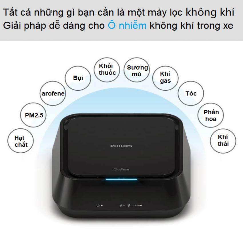 Máy lọc không khí ô tô Philips hút mùi hôi, chất gây ô nhiễm bao gồm vi khuẩn, vi rút GoPure GP5301 đèn báo 3 chế độ Công nghệ lọc Philips SelectFilter Plus làm sạch