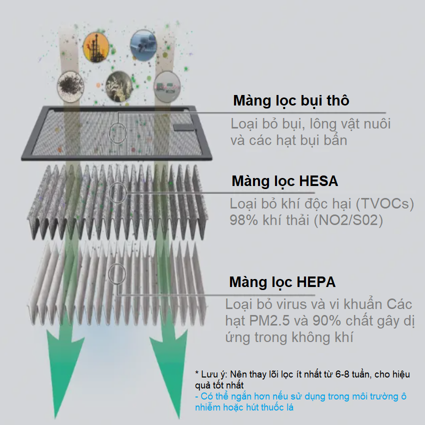 - Ưu điểm mong muốn: Lóc không khí và loại bỏ hiệu quả các hạt bụi siêu nhỏ độc