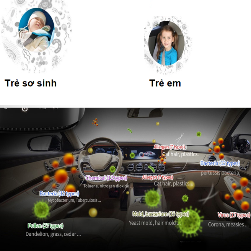 - Khử mùi hiệu quả: Lọc khí bẩn, khí độc, mùi xăng xe, khói thuốc một cách triệt để. Giúp chống say xe.