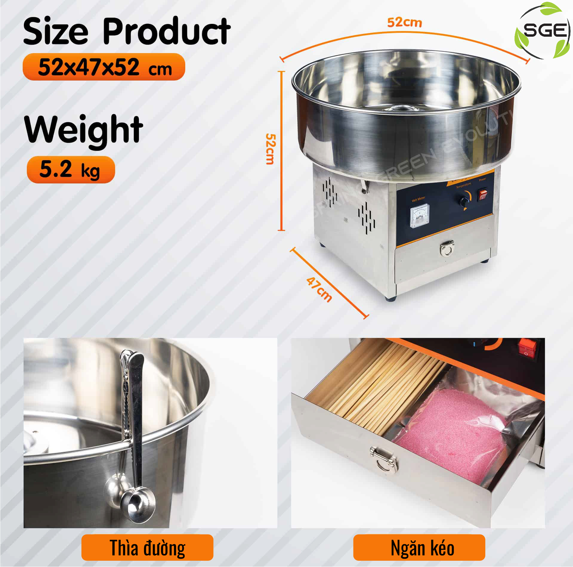 – Sử dụng dễ dàng, chỉ cần thêm đường và nhấn một nút duy nhất làm kẹo bông gòn trong 2-3 phút