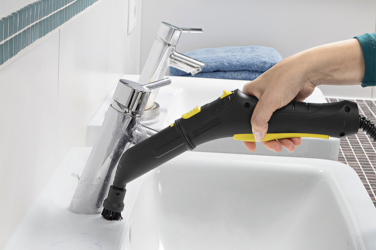 Máy làm sạch bằng hơi nước Karcher giúp làm sạch hiệu quả với bàn lau sàn, tay cầm phun hơi, bàn chải tròn, Khăn lau được làm bằng chất liệu vải không dệt (microfibre) cao cấp, giúp làm sạch sâu một cách hiệu quả nhờ công nghệ hút và tẩy bụi cải tiến.