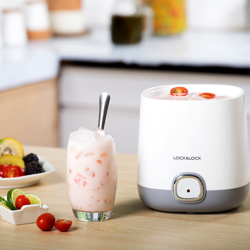 ✨Máy Làm Sữa Chua Lock&Lock EJY110SLV (1000ml) Nắp Trong Suốt Dễ Quan Sát Qúa Trình Lên Men - Hàng Chính Hãng Tặng Combo Ống Hút + Cọ Rửa
