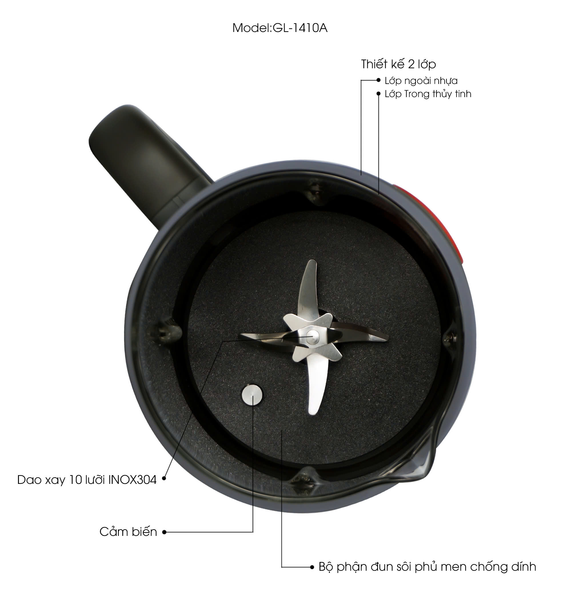 Đặc điểm máy chế biến sữa hạt Gali GL-1410A 1 lít 800w