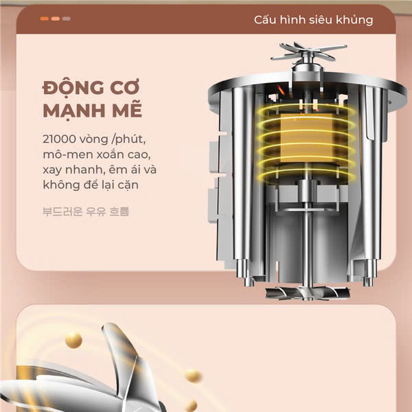 - ĐỘNG CƠ MẠNH MẼ 21000 vòng /phút, mô-men xoắn cao, xay nhanh, êm ái và không để lại cặn. Cấu hình siêu khủng