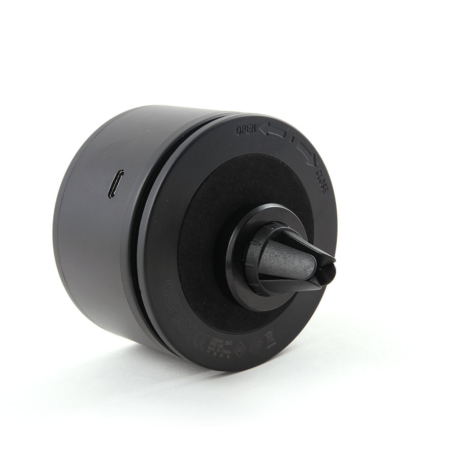 Với đường kính 7,5 cm, thiết bị tròn, nhỏ gọn dễ dàng gắn vào thanh thông gió của xe bằng một chiếc kẹp.