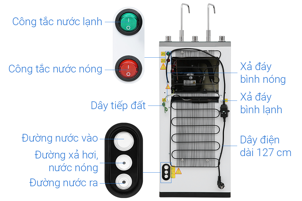 - Có với 3 chế độ nước nóng - nguội - lạnh.