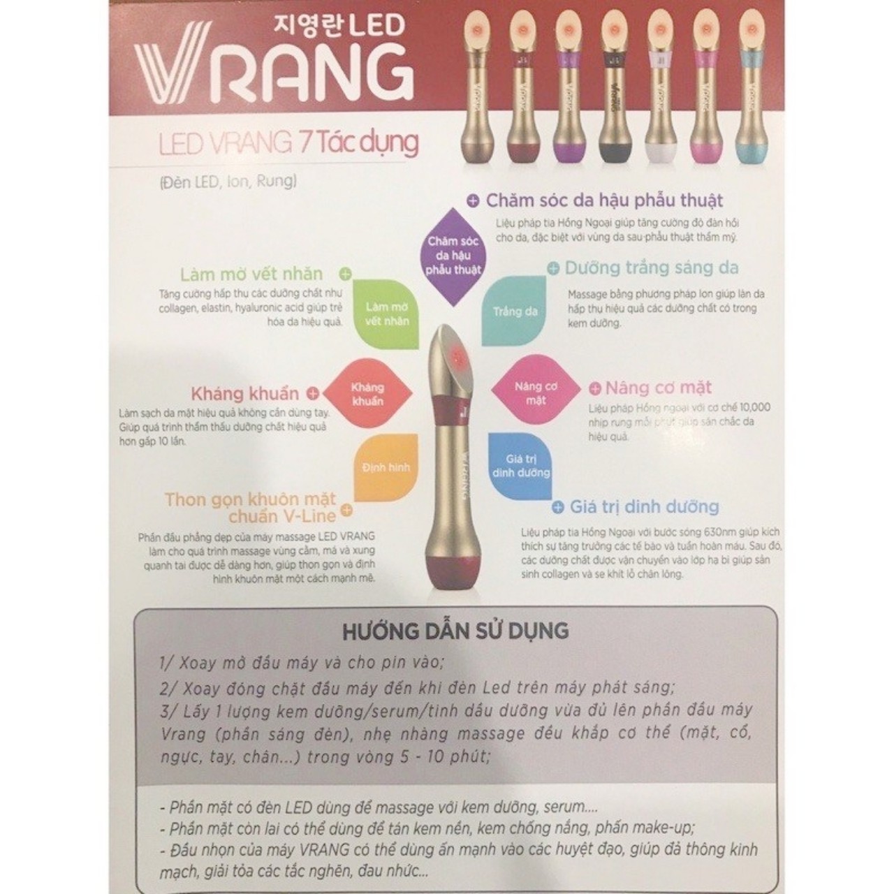 Hướng dẫn sử dụng Máy Massage Cầm Tay Chăm Sóc Da Mặt Led Vrang Hàn Quốc