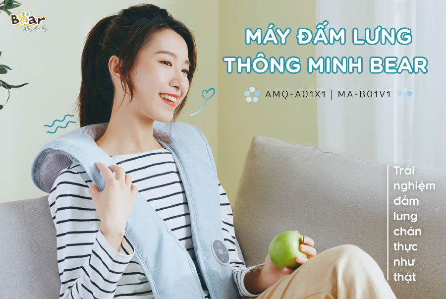 Máy đấm lưng Bear AMQ-A01X1 (MA-B01V1) thiết kế dạng đai cân bằng thông minh, sử dụng công nghệ Nhật Bản mô phỏng chân thật nhất phương pháp đấm massage như tay người giúp bạn thư