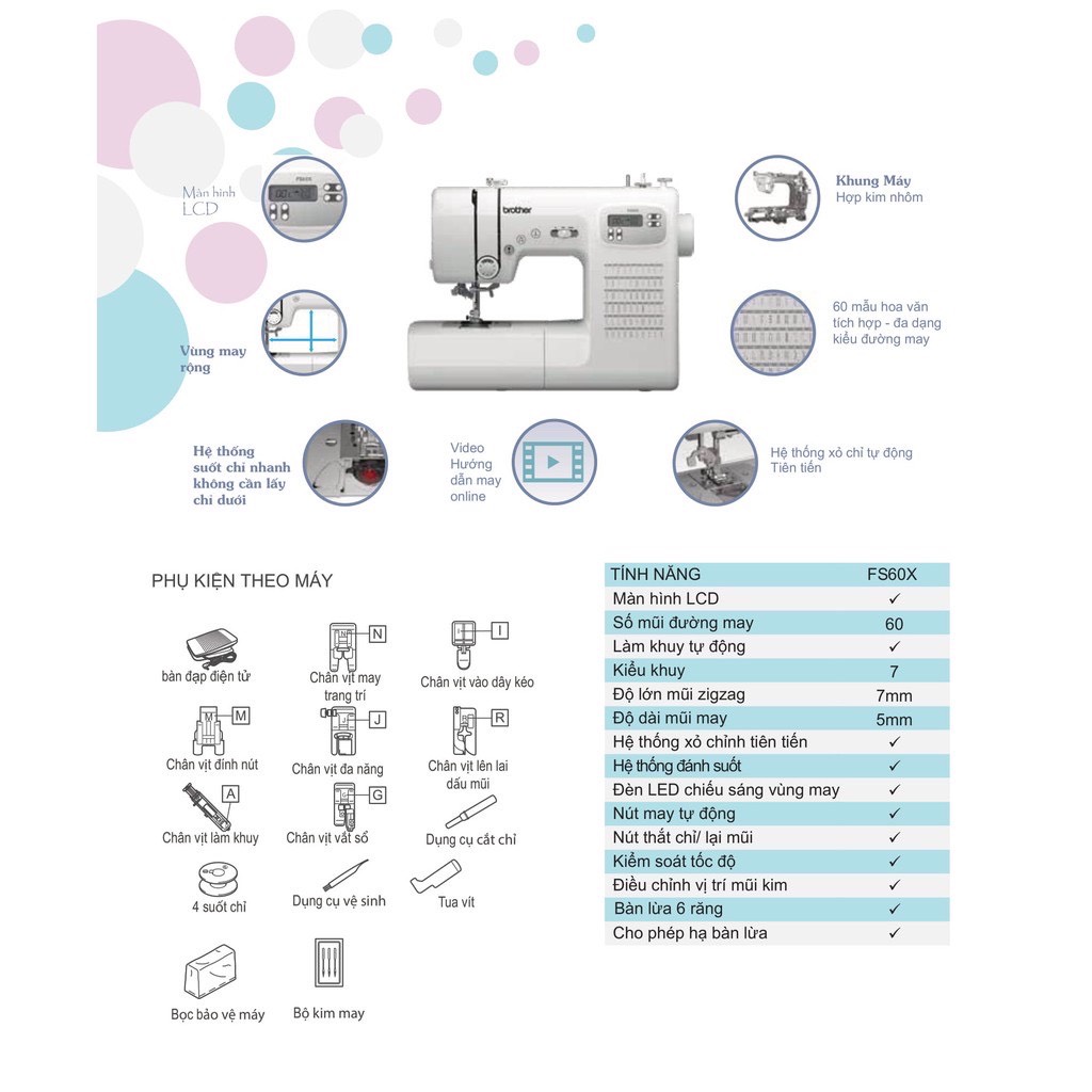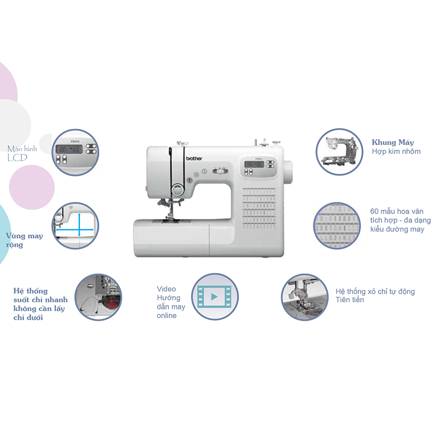 Thiết kế nhỏ gọn, màu sắc trang nhã Máy May Brother FS60X là một chiếc máy may hiện đại, thiết bị được tối giản hết mức để dễ dàng thao tác hơn. Kích thước nhỏ