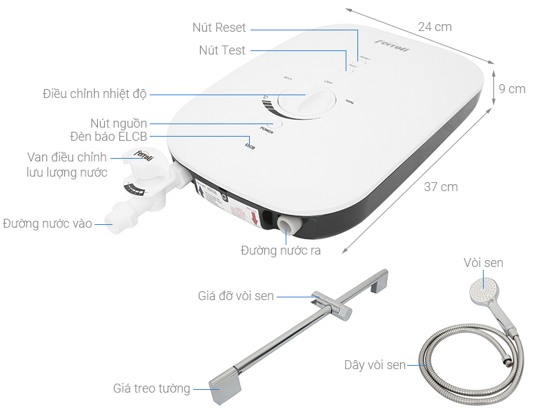 - Dễ dàng lắp đặt CÔNG TẮC KIỂM SOÁT DÒNG CHẢY Kiểm soát dòng chảy của nước, đảm bảo lượng nước đều và liên tục trong quá trình sử dụng. Chỉ một thao tác mở-tắt công tắc, người sử dụng có thể dễ dàng điều chỉnh mở-tắt hoạt động của máy nóng lạnh trực tiếp (có dòng nước chảy qua, máy nóng lạnh trực tiếp mới hoạt động và ngược lại) THANH ĐỐT BẰNG ĐỒNG NGUYÊN CHẤT HIỆU SUẤT CAO, TIẾT KIỆM ĐIỆN Thanh đốt hiệu suất cao bằng đồng tinh khiết đảm bảo độ bền cao, làm nóng siêu tốc. Bình chứa bằng sợi thủy tinh, giữ nhiệt tốt, tiết kiệm điện năng. NÚT XOAY ĐIỀU CHỈNH NHIỆT Cho phép tùy chỉnh nhiệt độ thuận tiện, đáp ứng nhu cầu sử dụng. Luôn luôn duy trì nhiệt độ nước ổn định. TAY SEN ĐI KÈM 3 CHỨC NĂNG Tay sen với 3 chức năng: giúp điều chỉnh lưu lượng theo nhu cầu, mạ crom sang trọng, thiết kế hiện đại, dễ lau rửa, vệ sinh an toàn cho sức khỏe THIẾT KẾ MỎNG, NHẸ, SANG TRỌNG Độ dày của mỗi bình nước nóng chỉ 7cm, khối lượng chỉ từ 2,75kg đến 3,08 kg. Phòng tắm sẽ trở nên tiện nghi hơn, cho dù là ở diện tích rất nhỏ. VAN ĐIỀU CHỈNH LƯU LƯỢNG THUẬN TIỆN, CHẤT LƯỢNG Van điều chỉnh lưu lượng đặc biệt, dễ dàng điều chỉnh lưu lượng nước như ý muốn, van có độ bền cao.