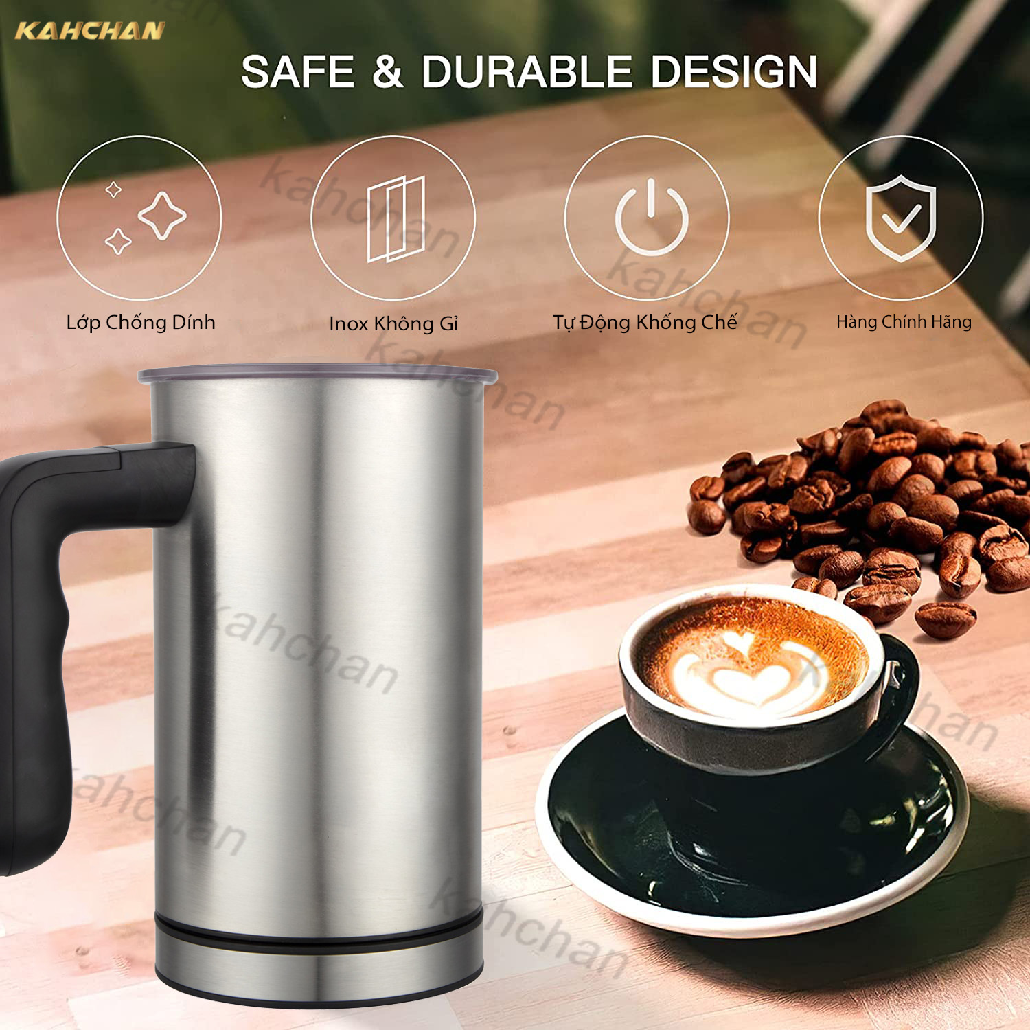 Mua tại Tiktokmáy đánh sữa tạo bọt chuyển nghiệp kahchan EP2198 CÓ 4 cách đánh sữa: tao bọt dày,tạo bọt mịn,tạo bọt ít, tạo bọt lạnh!,như vậy có thể hài lòng với nhu cầu về pha chế thức uống nóng và lạnh như: cà phê bạc xỉu, cà phê capuchino/latte, cacao sữa,matcha sữa, trà sữa milk foam một cách đơn giản. Máy này có thể tự động khống chế nhiệt độ 65-75 độ,không làm cháy thành phần dinh dưỡng của nguyên liệu ,dung tích 600ml có thể pha 1-2 ly thức uống trong khoảng 1 phút tùy thích