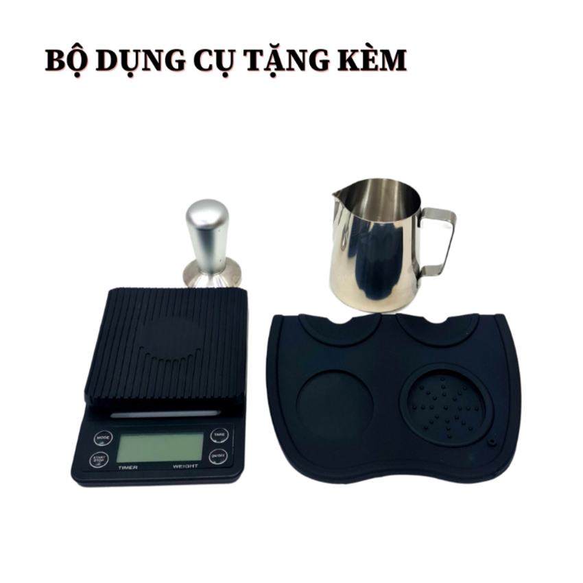- Pha cà phê espresso, xay hạt, tạo bọt sữa và đồng hồ do áp suất 3 trong 1