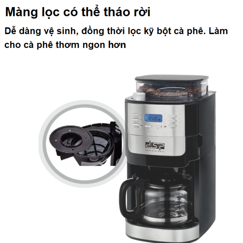 ✨Máy pha cà phê tự động 2 trong 1 kiêm xay hạt cà phê DSP KA3055 - Công suất 1000W - HÀNG NHẬP KHẨU