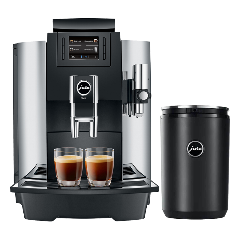 Máy pha cà phê Jura We8 tích hợp công nghệ tiên tiến như một cuộc cách mạng hoá máy pha cà phê. Chỉ cần một thao tác bấm nút để tạo ra chế độ cà phê yêu thích, tuỳ theo từng trường hợp và khách hàng khác nhau mà có chương trình phù hợp, cũng có thể tuỳ biến nếu cần ưu tiên cho một chế độ nào đó bằng việc vô hiệu hoá chế độ khác.