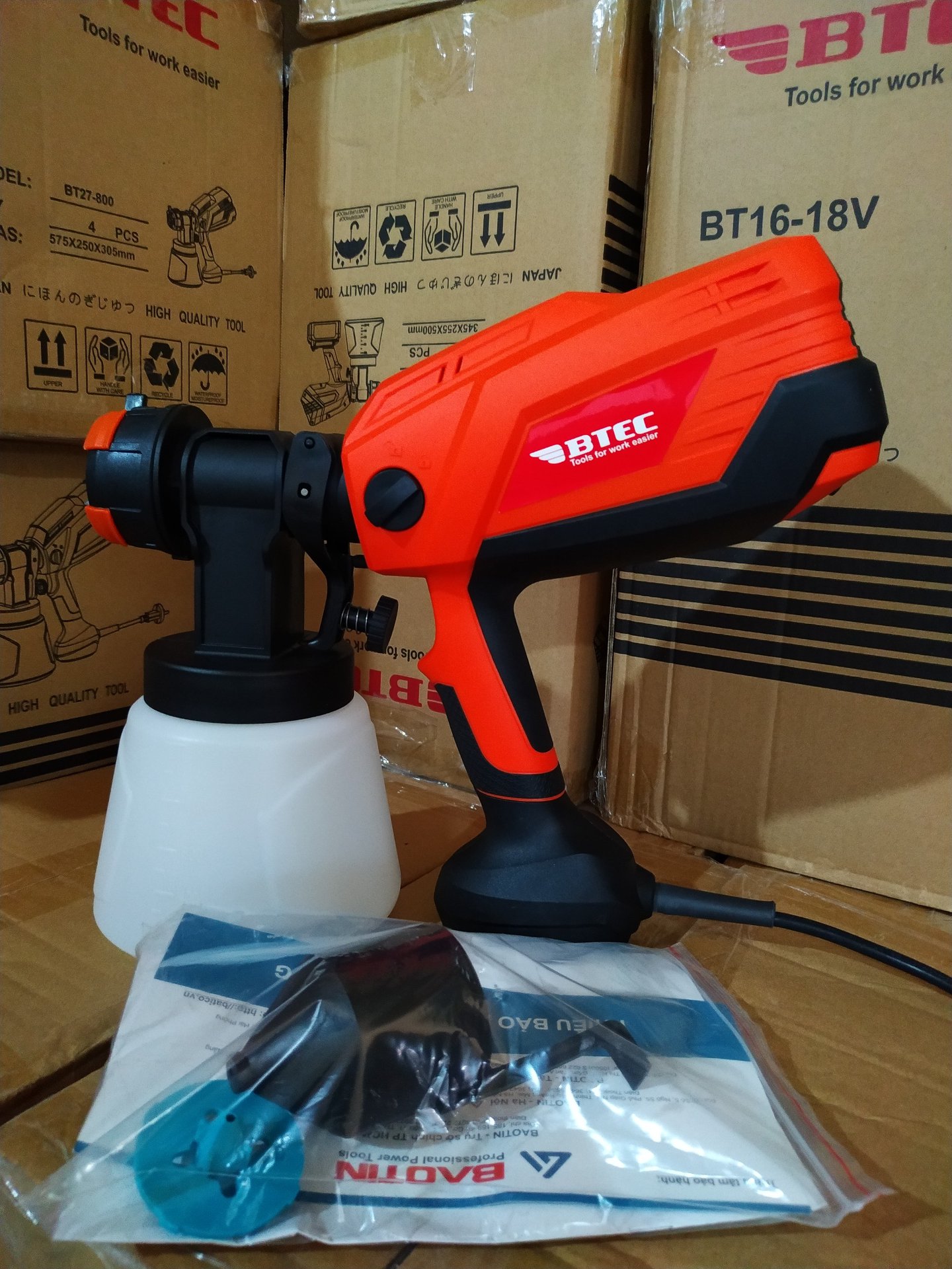 Máy phun sơn BTEC BT27-800 phun sơn được trên mọi chất liệu. Công việc sơn nhà cửa luôn gây cho bạn nhiều khó khăn, rắc rối với các dụng cụ như sơn, cọ, bình sơn,