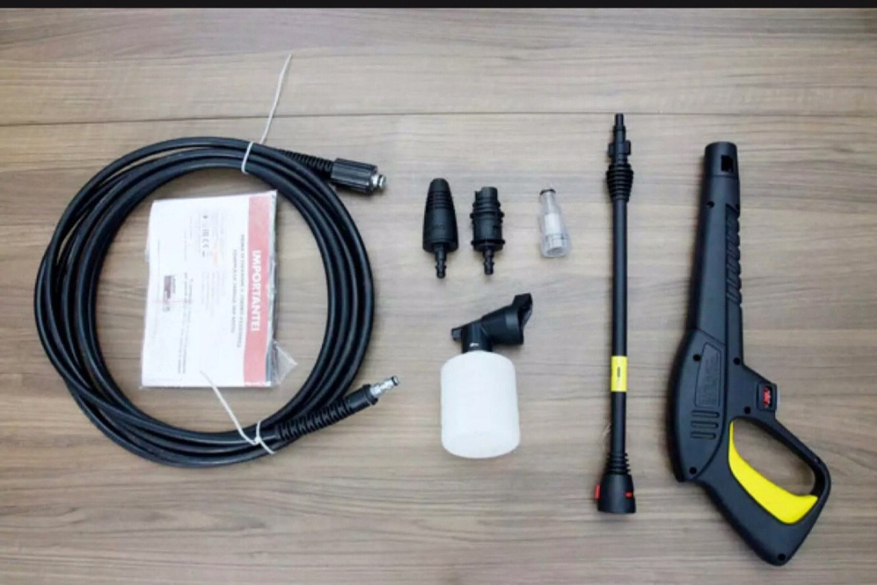 Máy rửa xe Lavor Saturn 140 được trang bị 2 bánh xe di chuyển, dây phun xịt dài 6m, đi kèm đầu phun chỉnh tia, đầu phun turbo tăng áp giúp máy đa công năng làm sạch.
