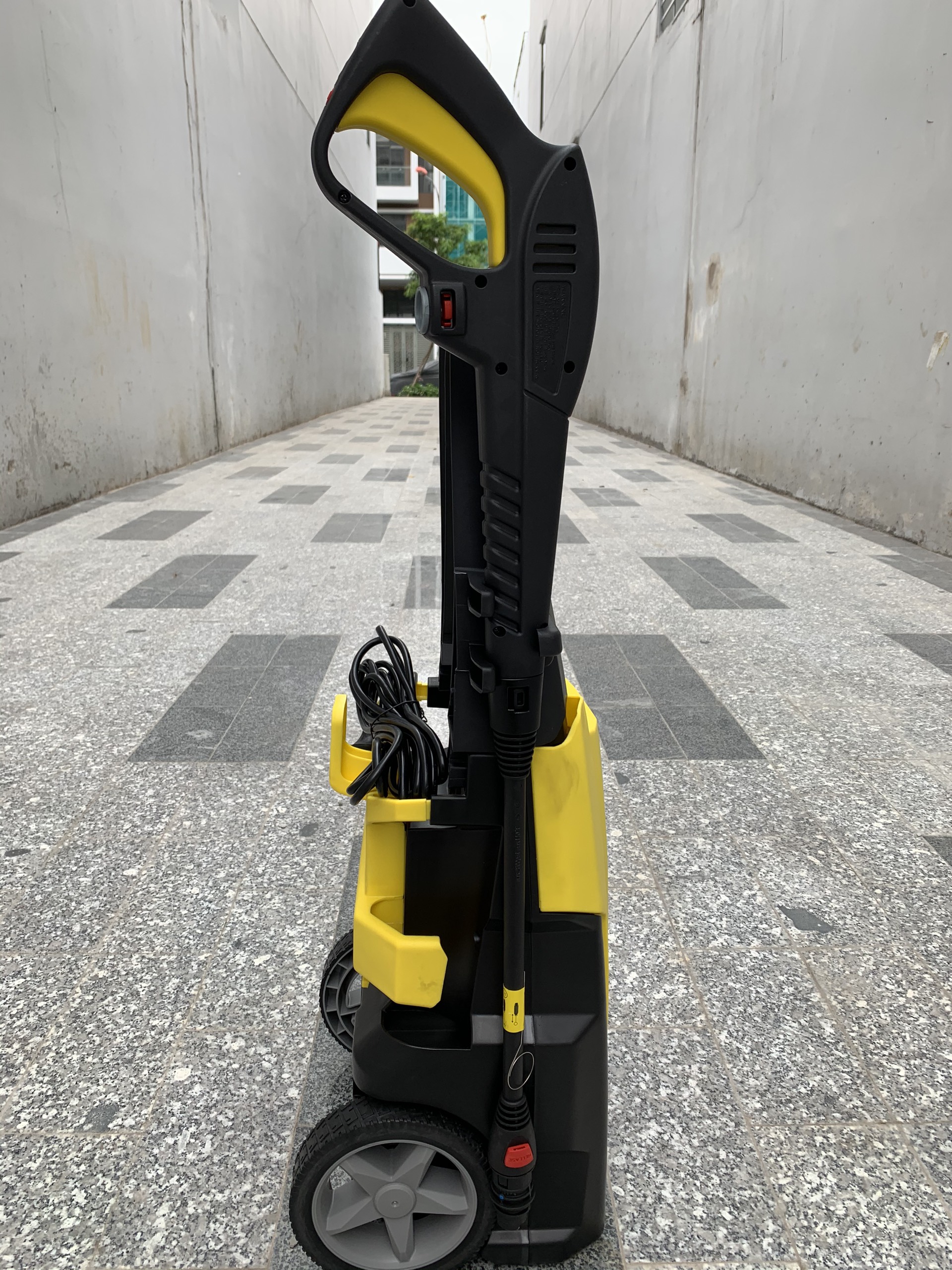 Máy có khả năng tự hút nước từ xô chậu tiện lợi cho những nơi xa nguồn nước.