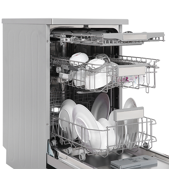 Máy rửa bát độc lập hoặc âm tủ 2 khay chứa cơ động + 1 khay đề thìa, đũa, dĩa, dao, kéo Tiết kiệm đến gần 50% năng lượng và thời gian, ngoài ra giúp