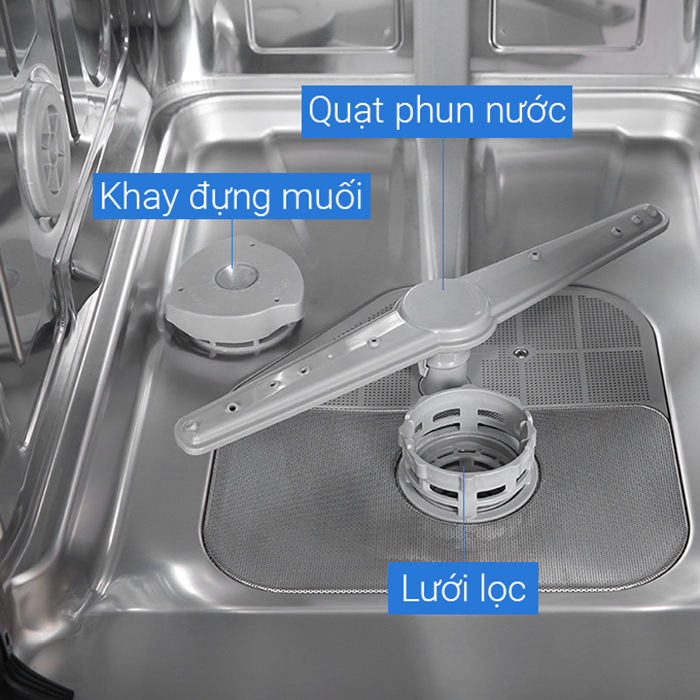 - Chức năng nổi trội: TURBO SPEED , Power wash, Express wash - Tự động mở cửa khi kết thúc chương trình rửa (Auto open) - Thân máy bằng thép không gỉ mạ màu bạc (silver)