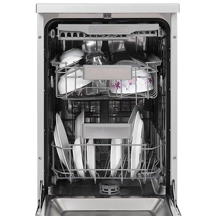 TÍNH NĂNG SẢN PHẨM •• Máy rửa bát đứng độc lập •• Dung tích: 8 bộ, có thể sử dụng 9 bộ, 2 tầng giá rửa bát •• Điều khiển phím bấm điện tử với