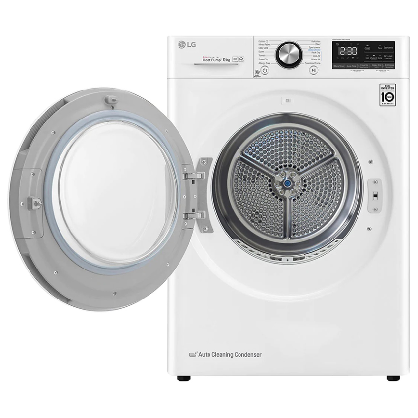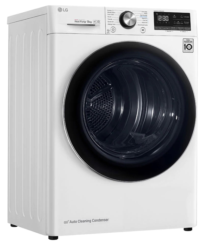 LG DVHP09W đáp ứng khối lượng quần áo sấy đến 9kg, phù hợp cho những hộ gia đình có số thành viên từ 3 - 5 người.