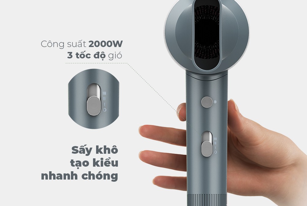 - 3 tốc độ gió sấy khô, tạo kiểu nhanh chóng